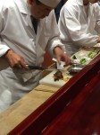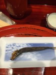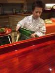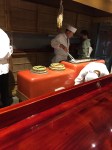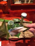 Finally, I have waited the whole trip to talk about this next item. This was by far the best piece of food I put in my mouth the entire trip after the tempura quail egg and red clam in Tokyo. Not only the best flavor, but also a unique glimpse at a style of sushi making unique to Kyoto, and almost a lost technique at that. According to the chef, this was the original way that sushi was prepared in the dark ages. Reason being, this piece of pressed sabazushi was made in May of 2014. I ate mackerel sushi that was fermenting for one year, with daikon leaf and root that dissolved into a putridly stinky paste in my mouth. It has a nitric content of fertilizer, almost reminded me of epoise cheese in its astringency. The flavor came in waves, and had a long finish. I can’t tell you what a perfect type of vessel a grain of rice can be in capturing the molecules that break down in degrading fish. The rice just mushes nasty, salty rottenness. I’m getting chills just remembering the shock at experiencing this for the first time.
