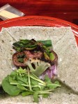 Then Kyoto beef grilled and wrapped around wild asparagus, cauliflower, and persimmon flowers. The place smelled like caramelized amazingness at this point.